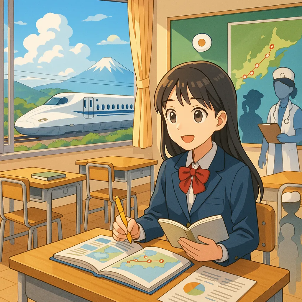- 交通×地理・社会科: 東海道新幹線の沿線調査を題材に、人口移動や観光、地域産業を生徒がリサーチ。フィールドノートの取り方やインタビューの作法も学べます。